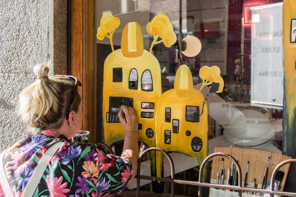 Entre los 50 proyectos seleccionados, hemos podido encontrar intervenciones artísticas de todo tipo, desde la fotografía de Jota Visual, las instalaciones llevadas a cabo con distintos materiales de AEB, Unt3rcio, Qita, Telenolibre o Terrario a por supuesto la pintura sobre fachadas y escaparates, con nombres como Deno, Bonssai, Elara Elvira, Alba Bla, Mauro Valenti o Fitz Licuado y Theic, componentes de Colectivo Licuado, entre muchos otros.