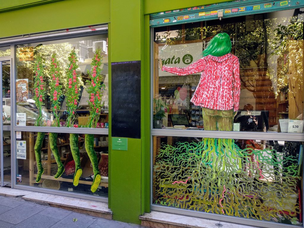 El Premio Alhambra fue para Parsec! y su intervención sobre el escaparate de A Salto de Mata. En clara conexión con la actividad del comercio, la obra de Antonio Feliz hace referencia a las raíces del ser humano y su conexión con la tierra: lo que ella nos da y lo que recibe de nosotros.