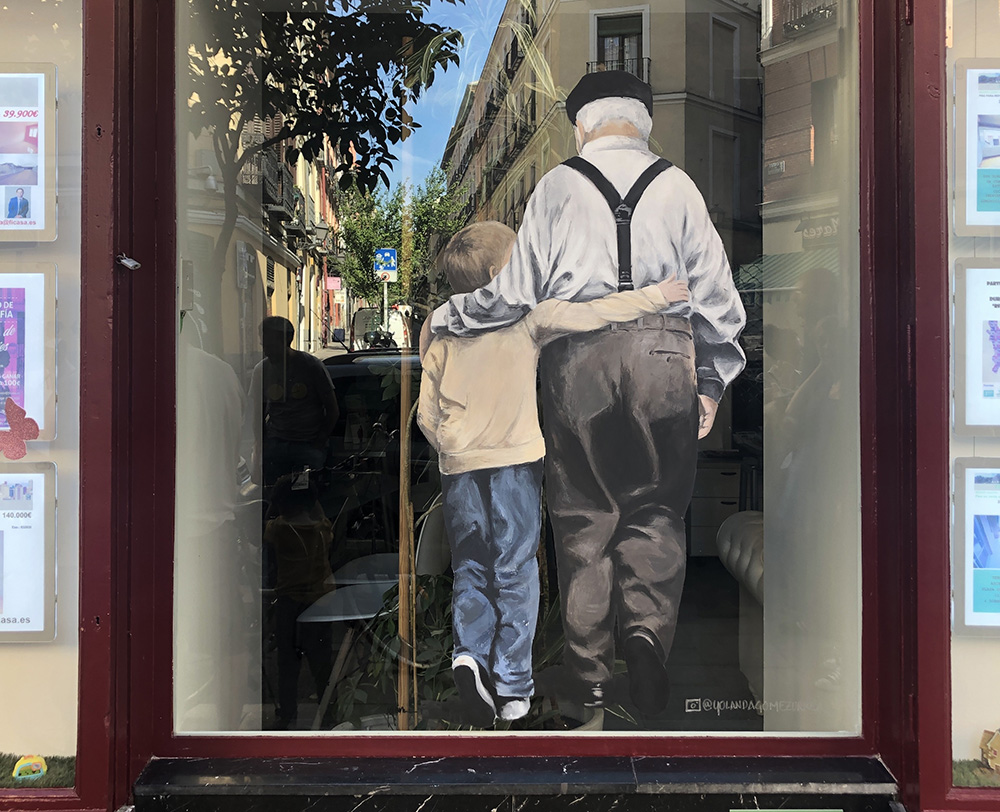 Y aunque la naturaleza del festival volverá a ser efímera, por primera vez en siete años esta edición va a respetar dos de las obras de 2019 por el vínculo de unión que se ha generado con el barrio. Son ‘Río’, de la artista Sara Fratini (el mural pintado en la cafetería La Libre) y la pintura que muestra un abuelo y su nieto en la fachada de Ficasa (inmobiliaria de la calle Valencia), creada por Yolanda Gómez Urrea. Permanecerá a modo de homenaje a los mayores que, como en muchos otros barrios, son los que han escrito la historia de Lavapiés.