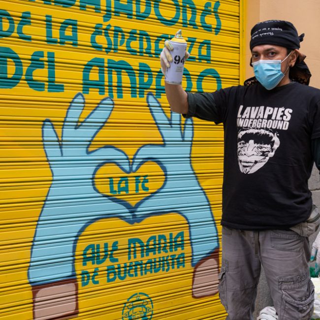 Will Yakome, en Sr Matambre (Amparo 12), ilustra «La fe del barrio», un juego de palabras con algunas de las calles de Lavapiés que sugieren un poco la protección y cuidado de la salud.
