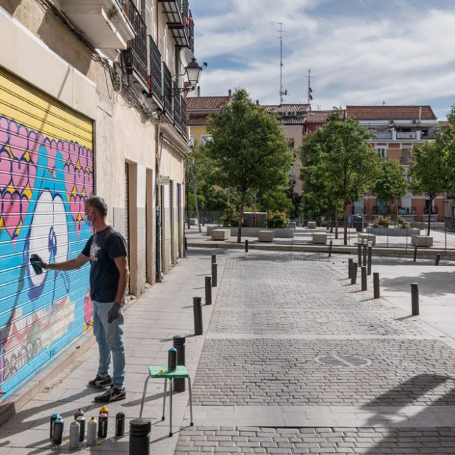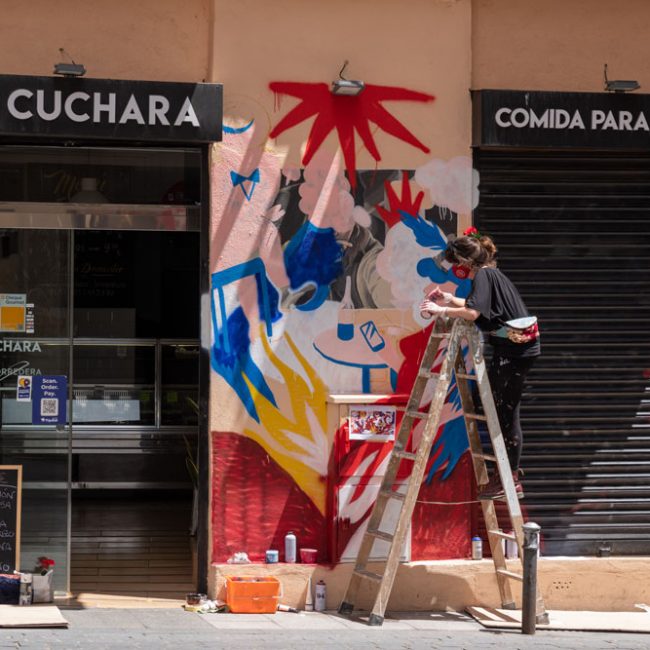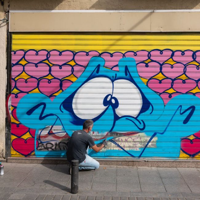 «LOveCUoRE», la propuesta de Max501 es una explosión de colorido y amor para las calles del barrio. Una propuesta muy divertida que no deja indiferente a la gente que pasa por delante, creando un simpático espacio donde sacarle una sonrisa a los vecinos de Lavapies o curiosos paseantes.