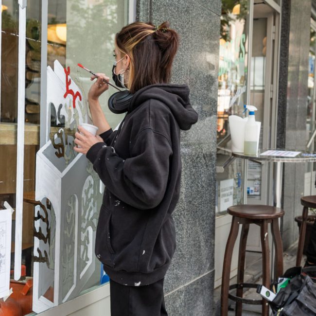 «Lavapies 2021», la intervención de gerCA para CALLE, es una búsqueda más dentro del lenguaje personal que tiene que ver con algunos conceptos urbanos y arquitectónicos característicos de su obra.