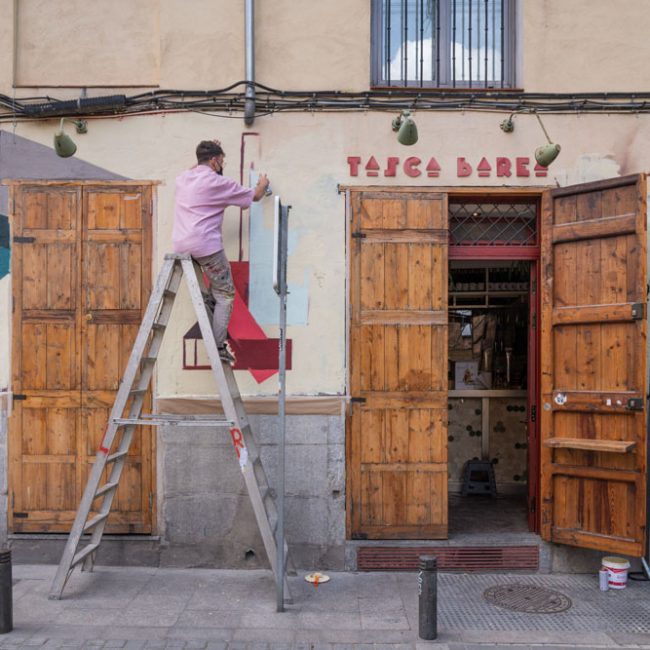 A pocos metros también llegamos a la obra de Jota_Visual, en Juan Raro (Miguel Servet 7), titulada «Veinte locutorios».