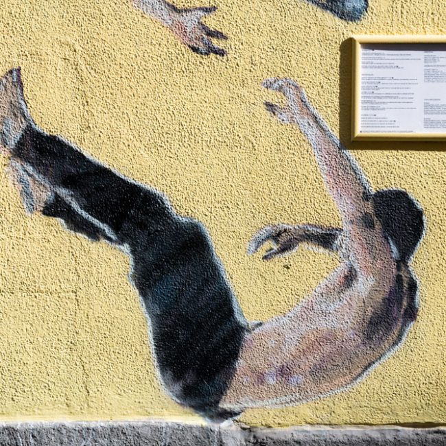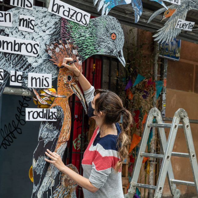 En Encuentros Café, Missmsmith nos invita a mirar al cielo con «Cielos de Lavapiés», una obra formada por una composición de las aves de los tejados de Madrid como encuentro de un barrio en el que conviven diversas culturas en armonía.