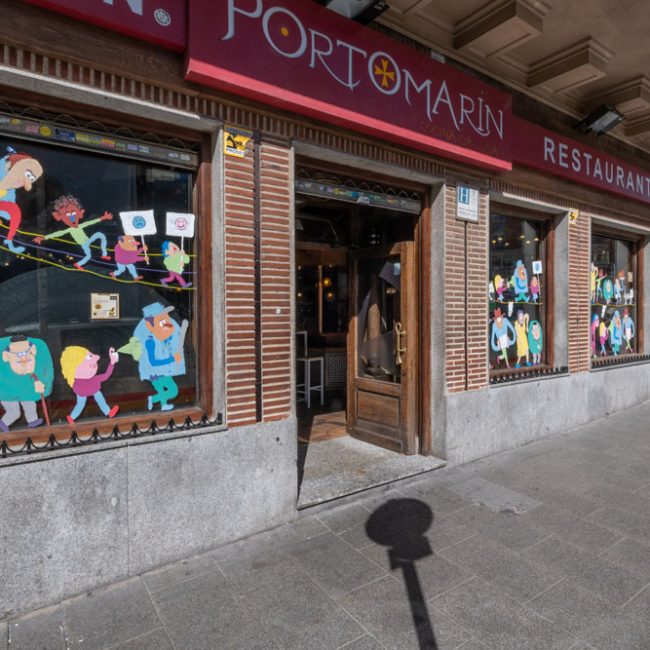 En el emblemático bar Portomarín (Valencia 4), se encuentra la obra de Sr Mu: «Viñetas in situ pre mortem live session». Unas escenas a modo de tebeo inspiradas por el lugar y sus gentes mezcladas con mi pedrada interior.