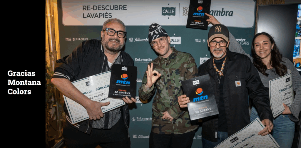 El Premio del Público, como la obra más valorada a través de las redes sociales de #CALLE2024 y dotado con 800 euros y 30 botes de pintura en spray Montana Colors, ha sido para Bugletplanet por su obra ‘Gent del barrio’ y son las gentes del barrio las que dan forma a esta obra a través de dibujos realizados a partir de fotos de las viandantes y vecinos que se puede ver en el Estanco Lavapiés, en el número 41 de la calle del mismo nombre. Lo puedes ver debajo de este texto: