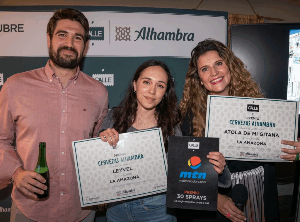 El mural ‘La amazona’, de la artista Leyvel, ha sido galardonado con el codiciado Premio Alhambra, dotado con 1.200 euros y 30 botes de pintura en spray Montana Colors. Este mural en el establecimiento ‘A tola de mi gitana’, en la calle Argumosa, 9, cuenta con un efecto de realidad aumentada 3D, que aparece a través de un QR situado en el mismo, lo que hace que la pintura cobre vida en los móviles de los visitantes. La puedes ver a continuación: