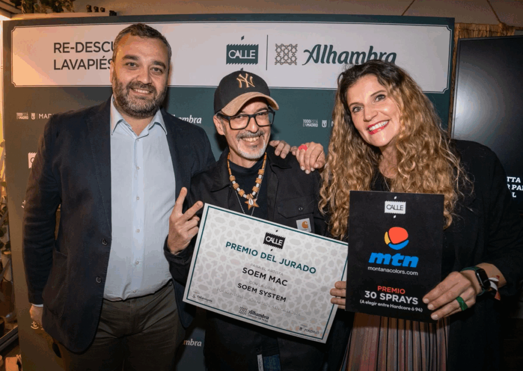 El Premio del Jurado ha sido para la obra ‘Soem Mac’, del artista Soem System, que puedes ver en el establecimiento ‘Ven Ven Ven’ en la calle Argumosa, 15. Su dominio del ritmo, movimiento, volumen, formas y caligrafía urbana le ha valido el galardón dotado con 2.000 euros + 30 botes de pintura en spray Montana Colors. La obra es la primera foto que puedes ver en el blog como imagen de portada arriba.