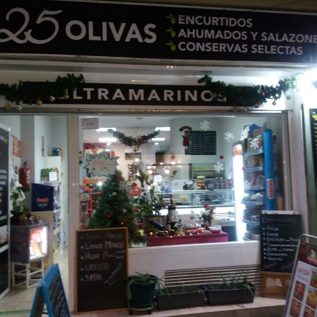 25 Olivas es una tienda dedicada a la venta de encurtidos, ahumados y conservas selectas, como aceitunas y aceitunas rellenas, boquerones en vinagre aliñados o bonito del norte en escabeche envasado y elaborado a mano, además de ser un punto de venta al granel de legumbres y enlatados. También puedes encontrar los mejores vinos y muchas más variedades de productos.