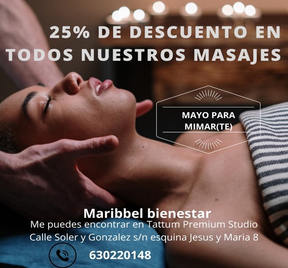 ¡Maribbel Villar te espera con descuentos especiales de «Lavapiés me mima» en masajes y distintas técnicas que te harán salir flotando de su local!