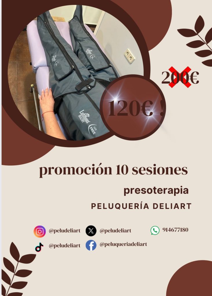 ¡Revitalízate con 10 sesiones de presoterapia! Disfruta de un tratamiento personal y exclusivo para mejorar tu bienestar. Tu bono incluye 10 sesiones diseñadas para ayudarte a sentirte mejor. ¡No dejes pasar esta oportunidad de cuidar tu cuerpo! Este tratamiento es personal e intransferible, tienes que pedir cita en el teléfono 91 467 71 80. Por 120€ ¡antes 200€!