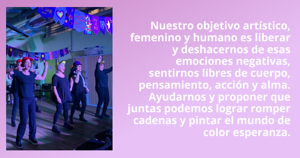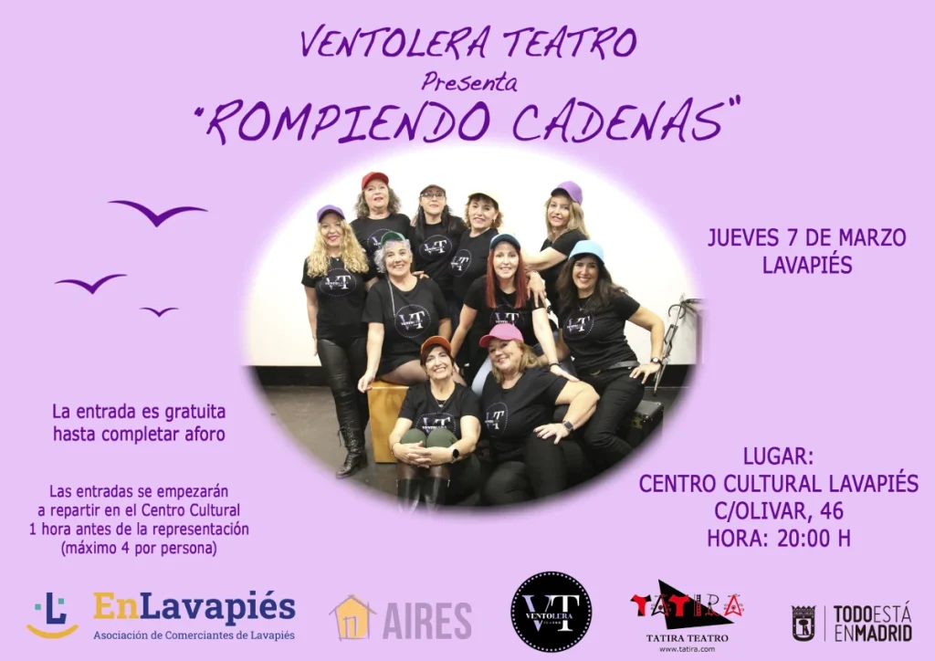 El grupo se creó en marzo de 2023, en un taller de laboratorio teatral en el Espacio de Igualdad Lucrecia Pérez, y desde entonces van “Rompiendo Cadenas” allá donde van. ¡No te lo pierdas, el 7 de marzo en el Centro Cultural Lavapiés a las 20h!