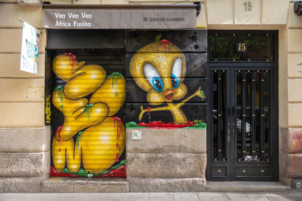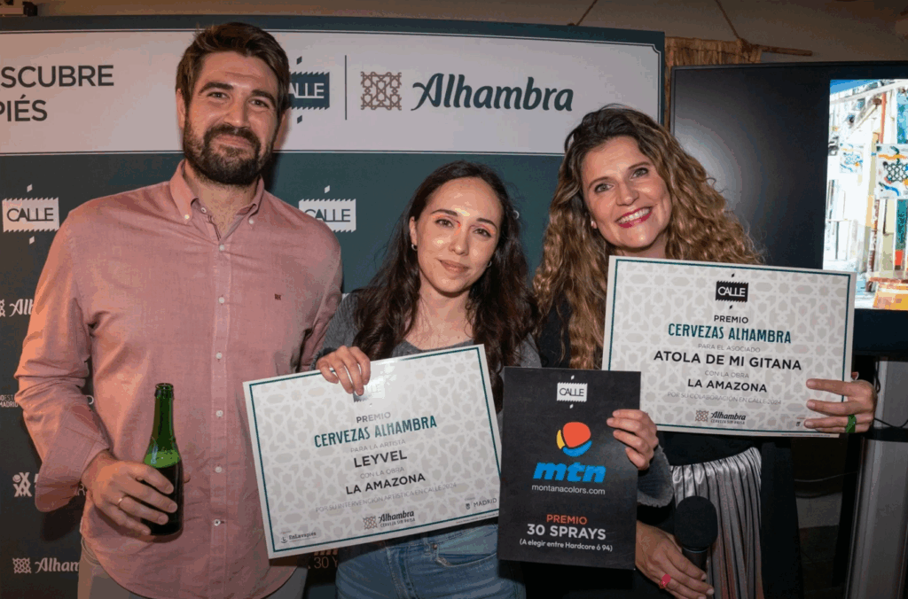 El mural ‘La amazona’, de la artista Leyvel, de sólo 24 años, ha sido galardonado con el codiciado Premio Alhambra, dotado con 1.200 euros y 30 botes de pintura en spray Montana Colors. Este mural en el establecimiento ‘A tola de mi gitana’, en la calle Argumosa, 9, cuenta con un efecto de realidad aumentada 3D, que aparece a través de un QR situado en el mismo, lo que hace que la pintura cobre vida en los móviles de los visitantes.