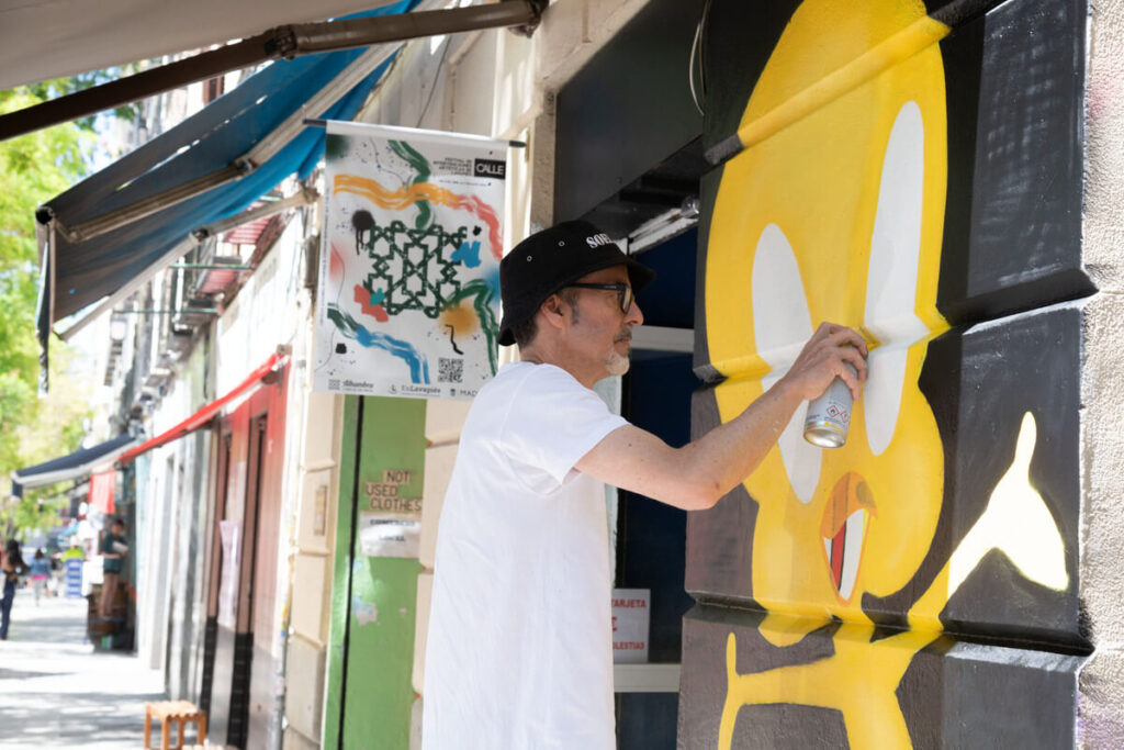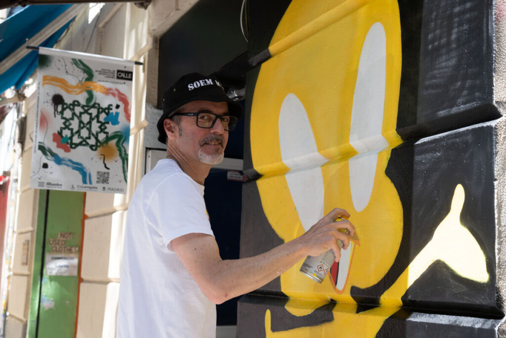 El Premio del Jurado fue para la obra ‘Soem Mac’, del artista Soem System, que puedes ver en el establecimiento ‘Ven Ven Ven’ en la calle Argumosa, 15. Su dominio del ritmo, movimiento, volumen, formas y caligrafía urbana le ha valido el galardón dotado con 2.000 euros + 30 botes de pintura en spray Montana Colors. En esta ocasión no ha podido participar en el podcast, pero no queríamos dejar de mencionar esta obra premiada tan original.