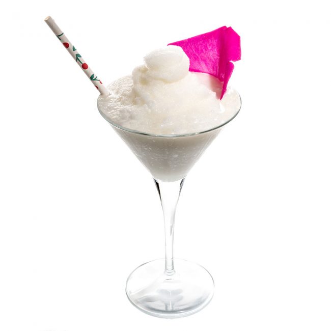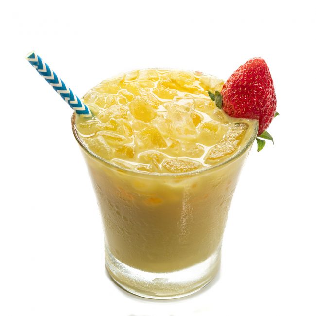 Mangoco: Batido de Mango típico indio, leche de coco, ron blanco y fresa.