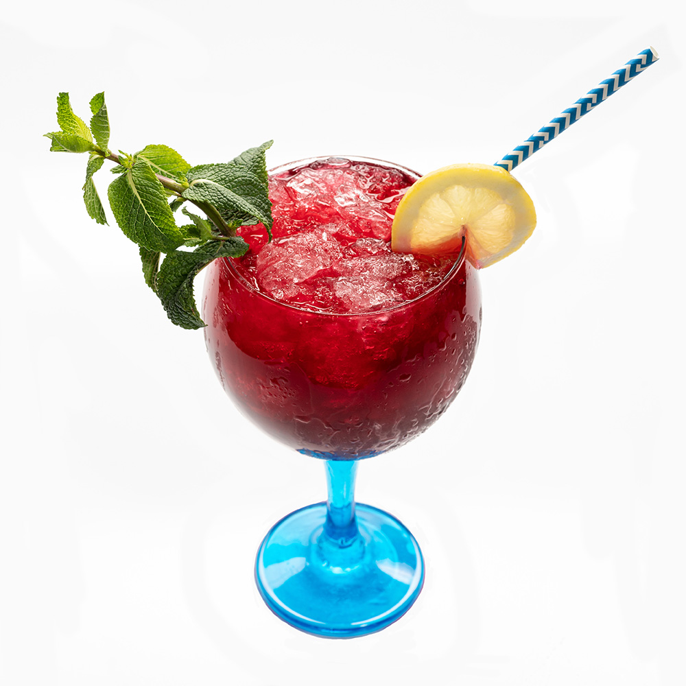 Versión s/alcohol: Licor de frutos del Bosque, fresa, lima, hielo y soda.