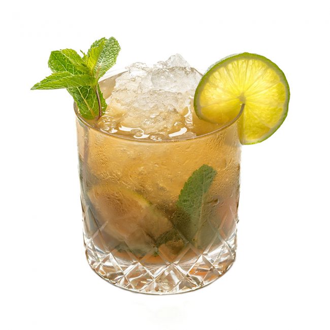 Mojito Cubano: Ron, Lima, Azúcar de Caña, Soda.