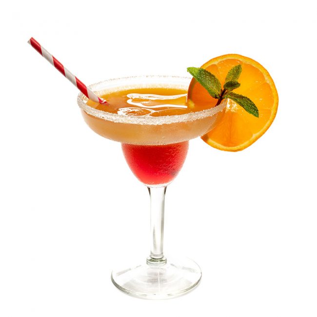 Piscorita, versión del Margarita con Pisco (aguardiente Chileno): Pisco, Cointreau, limón y sirope de azúcar en coctelera.